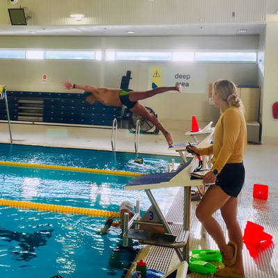 "I believe I can fly !!!!. In the pool before work to destress and get ready for the day. "