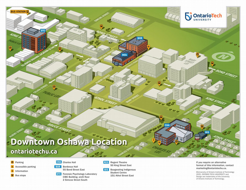 Ontario Tech University acknowledges the lands and people of the Mississaugas of Scugog Island First Nation. We are thankful to be welcomed on these lands in friendship. The lands we are situated on are covered under the Williams Treaties and the traditional territory of the Mississaugas, a branch of the greater Anishinaabeg Nation, including Algonquin, Ojibway, Odawa and Pottawatomi. These lands remain home to a number of Indigenous nations and people.
